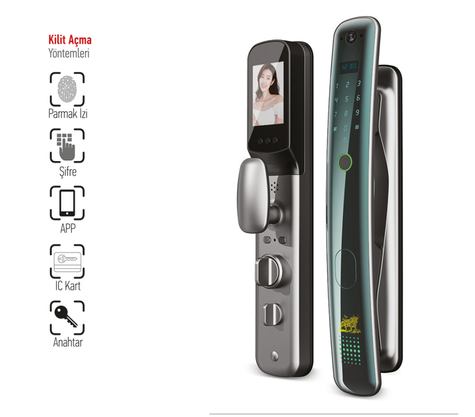 - 3 D Yüz tanıma, parmak izi, şifre, IC kart, APP ve anahtar olmak üzere 5 fonksiyonlu mekanik silindir ile açılabilen motorlu dış kapı kilidi